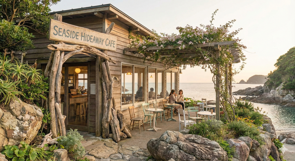 「海辺の隠れ家」をテーマに、20代〜30代の女性をターゲットにしたカフェサイトを制作しました。